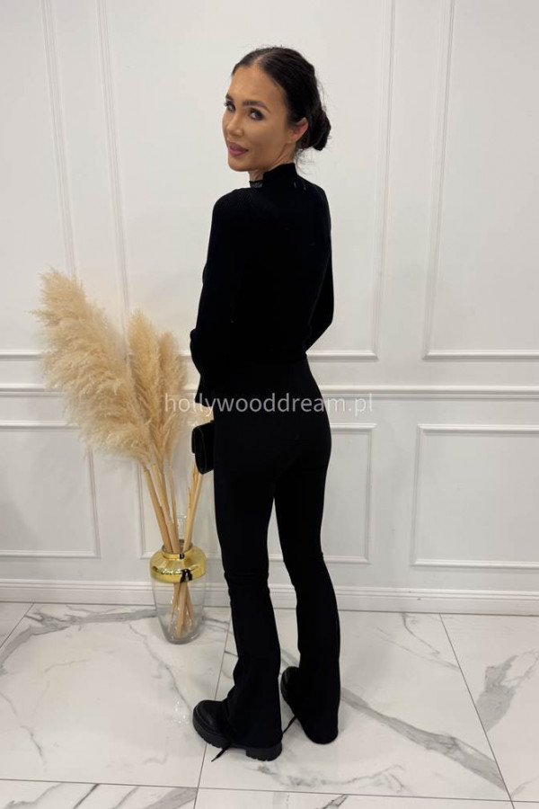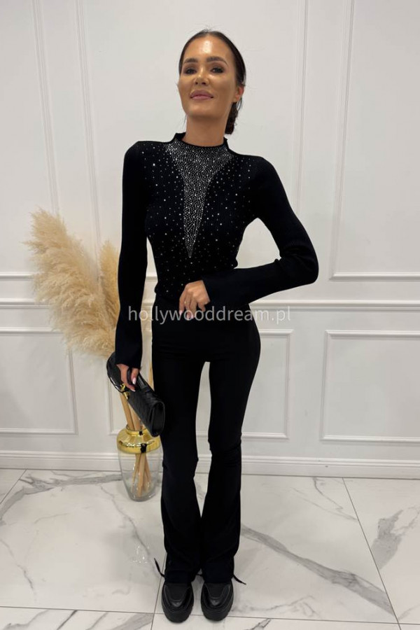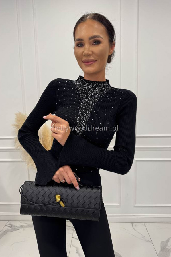 Czarna bluzka z półgolfem zdobiona cyrkoniami Brylee 09