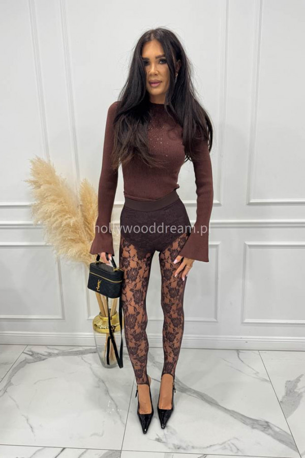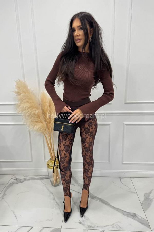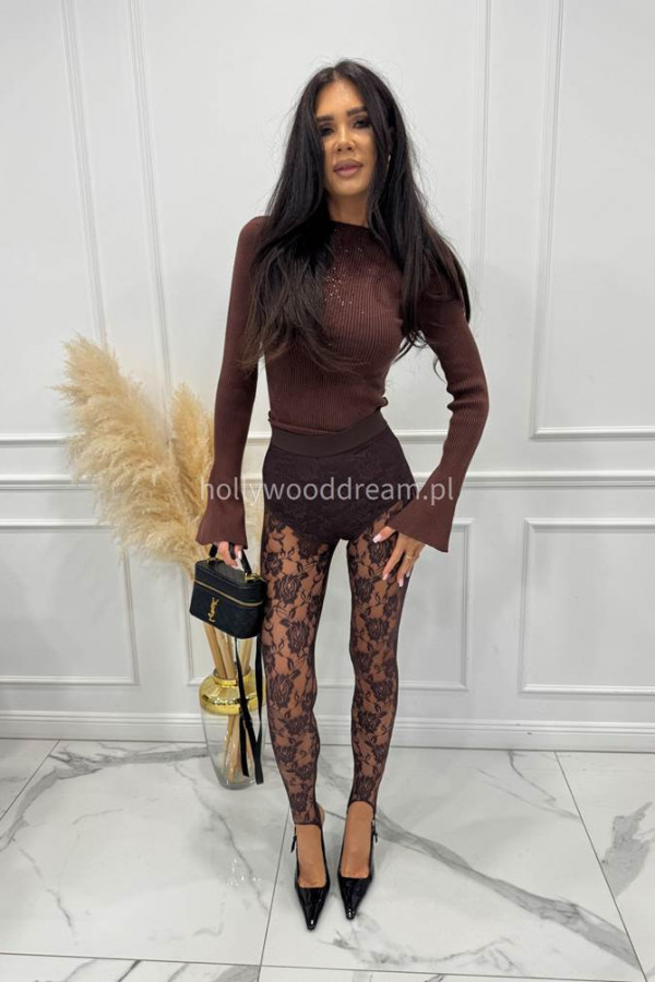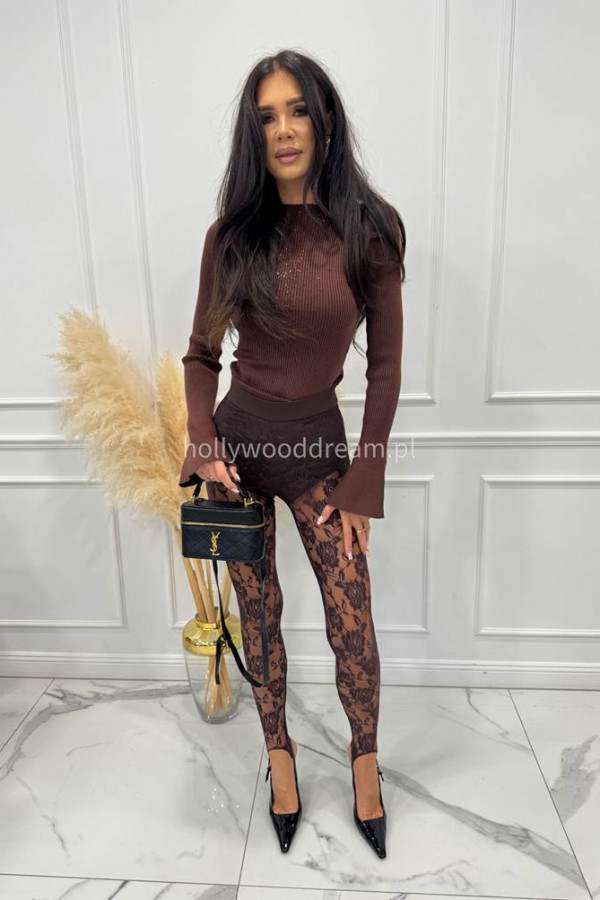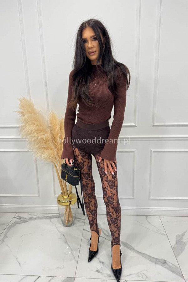 Brązowa bluzka z półgolfem zdobiona cyrkoniami Brylee 09