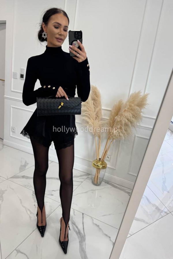 Czarne spodenki satynowe wykończone koronką MARBELA 173