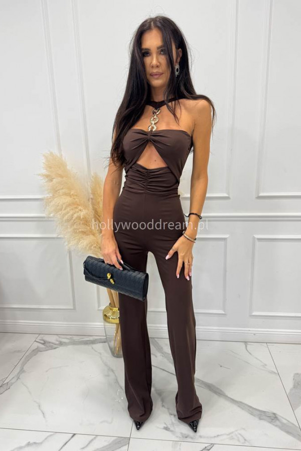 Czekoladowy kombinezon ze zdobieniem na dekolcie Clœlia 26