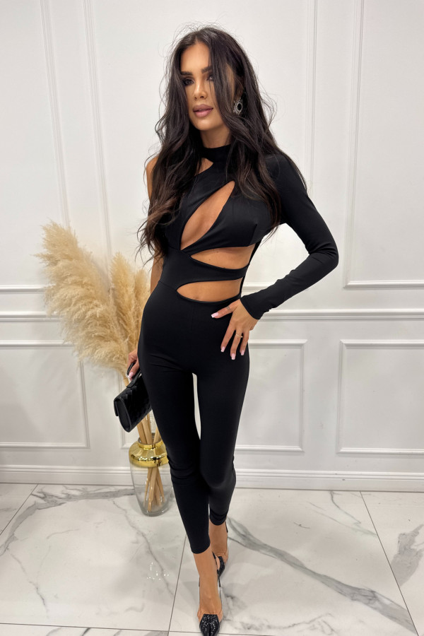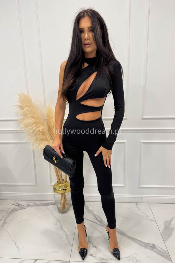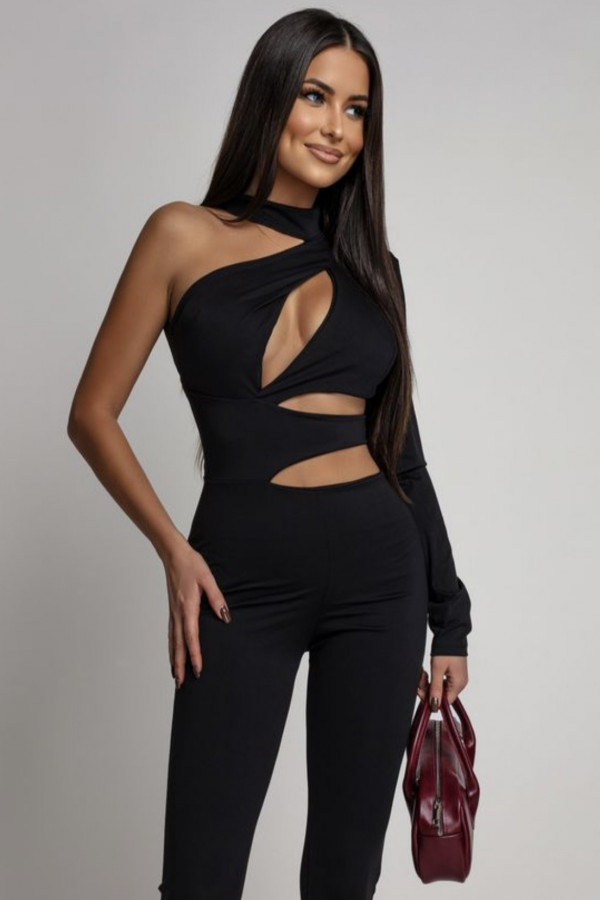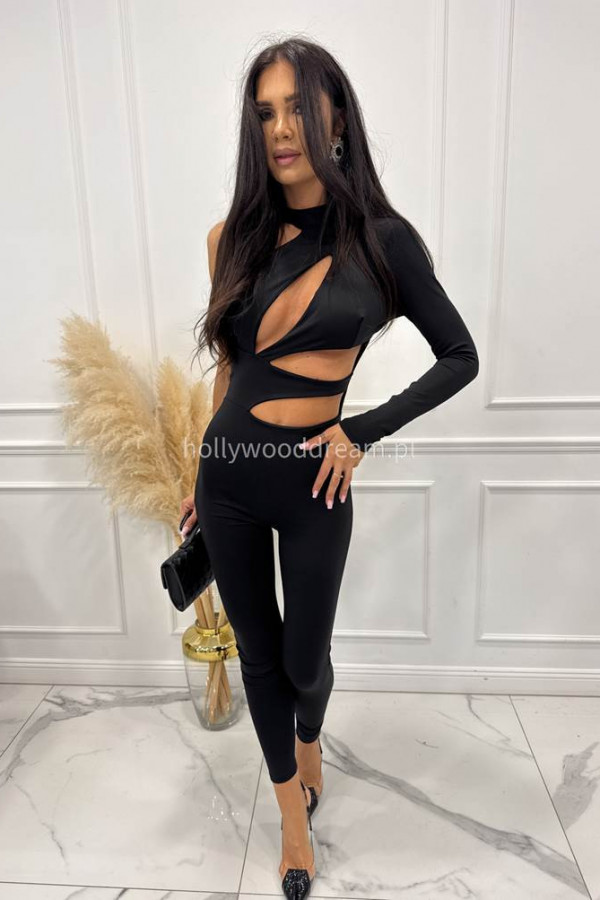 Czarny kombinezon na jedno ramię z wycięciami Cobie 26