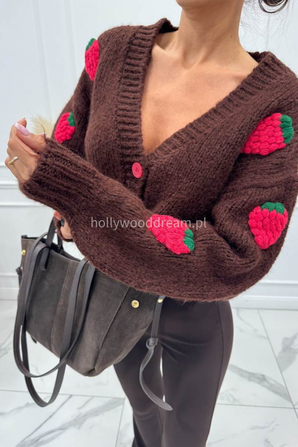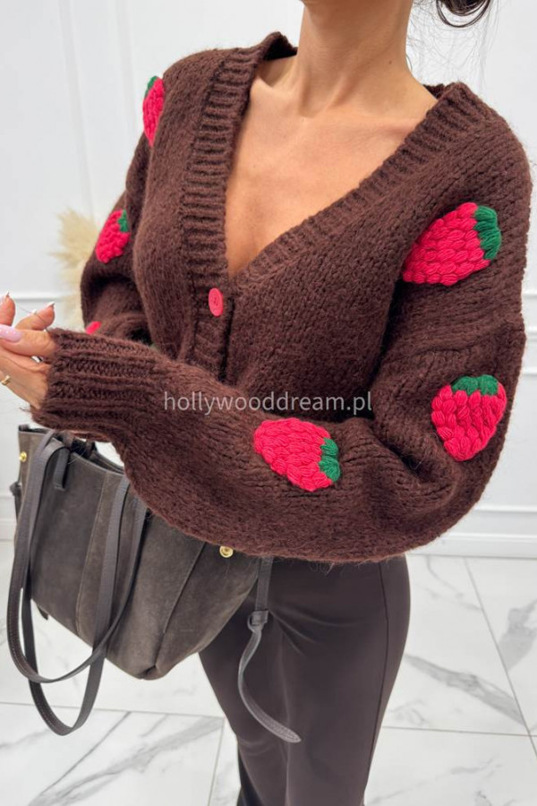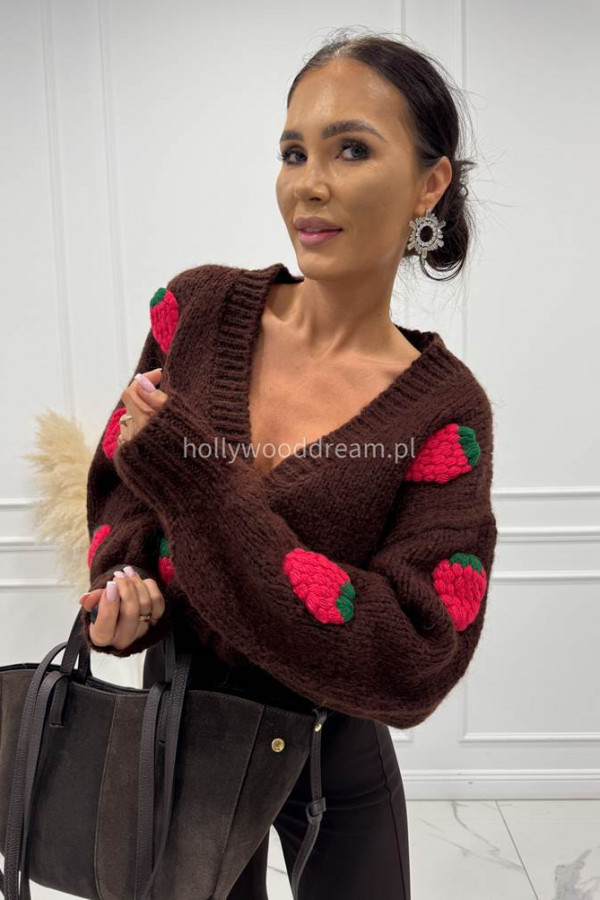 - Brązowy sweter z różową poziomką 3D LESSA
