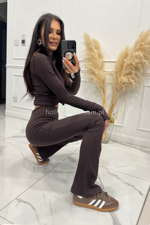 Czekoladowa bluzka w gruby prążek SIERRA to idealny wybór dla kobiet ceniących wygodę i styl. Wykonana z elastycznego materiału o grubym prążku, pięknie dopasowuje się do sylwetki, podkreślając jej atuty i zapewniając pełen komfort noszenia. Utrzymana w modnym, czekoladowym odcieniu, doskonale sprawdzi się zarówno w codziennych, jak i eleganckich stylizacjach. Klasyczny fason z długim rękawem i okrągłym dekoltem czyni ją uniwersalnym elementem garderoby — świetnie komponuje się z jeansami, spódnicą lub marynarką.