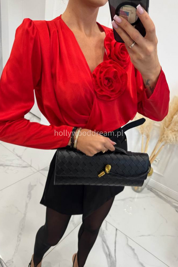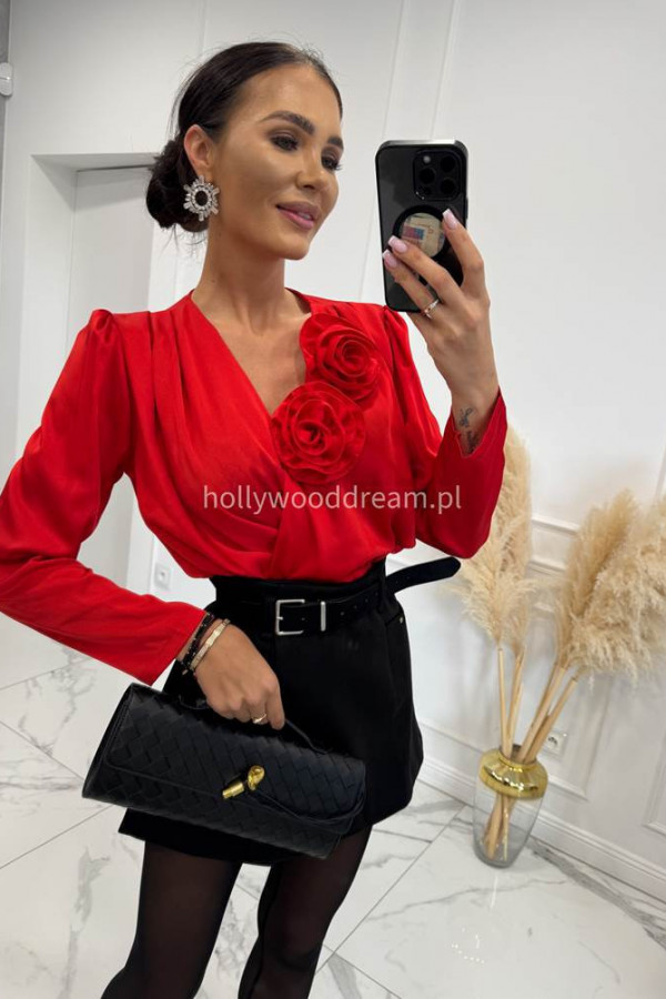 - Czerwona koszula satynowa na zakładkę z ruchomymi różami AGNIESZKA